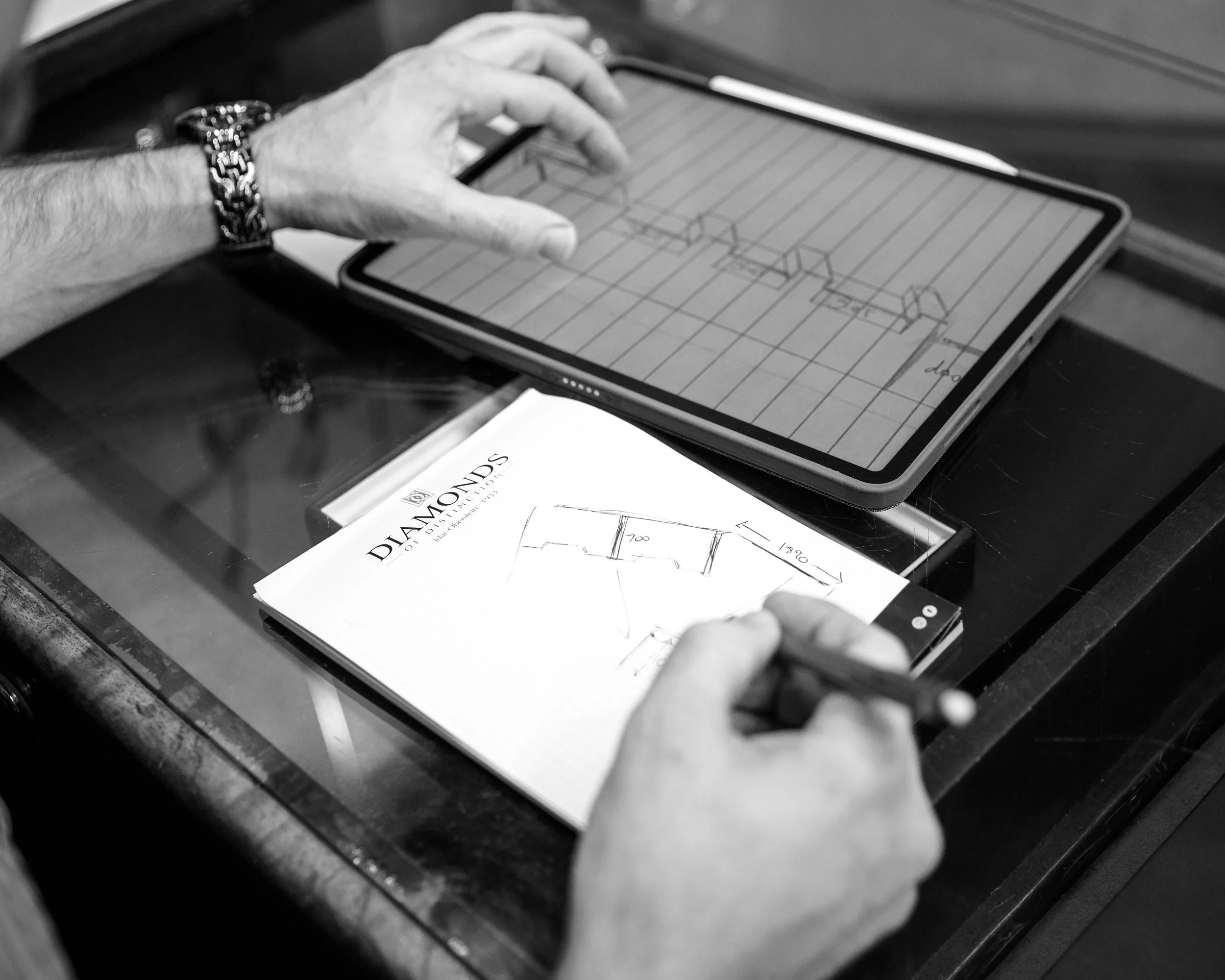 Our custom design service lets you bring your vision to life with a piece made just for you. Whether it's a unique engagement ring, a redesigned heirloom, or something entirely original, our jewellers will work closely with you to create a one-of-a-kind piece that reflects your style and story.